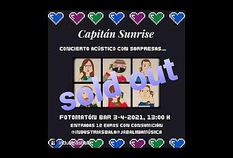 Show a la vista de Capitán Sunrise, que ahora cuenta con el cartel de no hay entradas, en Fotomatón Bar de Madrid. Capitán Sunrise llega al Fotomatón Bar en acústico en un concierto esperado, directo elegante y previsto para el puente. Con Capitán Sunrise (una de las grandes bandas de pop nacionales) anuncia fecha en Madrid, una nueva propuesta que ha agotado entradas, el show será en horario matinal el 3/4 y la sala será Fotomatón Bar donde siempre se han sentido cómodos tocando o disfrutando de la sala. Este show en fechas festivas es una apuesta por los directos de calidad.