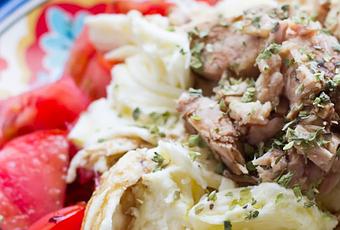 El segundo ingrediente importante para la receta es el queso mozzarella, preferiblemente fresco, pero podéis sustituirlo por cualquiera que os guste que no esté demasiado curado ni sea demasiado fuerte para no enmascarar el sabor del tomate. Del tipo Idiazabal le va genial también y es de los curados, por si queréis probar. La mozarrella cuando está fresca es de color blanco brillante, pero cuando está más seca cambia al color amarillento más típico del queso (y más fácil de encontrar en todos los mercados también, ya rallada y empaquetada).