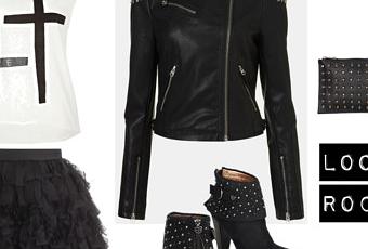 Para combinar la falda y la camiseta, he visto esta chaqueta, que le da el toque macarra al look, fabricada en viscosa y poliéster, con tachuelas en el cuello y la parte superior de las mangas.