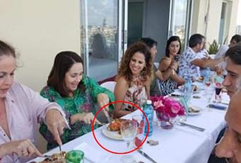 La langosta, prohibida para los cubanos, engalana el plato de Mariela, a quien se le ve muy sonriente mientras corta el exquisito marisco.