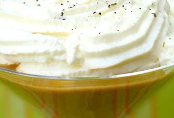 Calentamos y servimos en copas o tazas como si de un capuccino se tratara. La espuma superior será el mascarpone, que lo batiremos con las varillas para que tome un poco de aire y con una manga pastelera lo distribuiremos por encima de las lentejas.