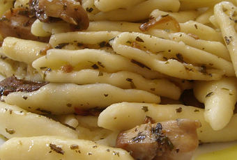 - Escurrir bien y saltear en una sartén con un poco de aceite donde habremos cortado unos ajitos en láminas. Añadir 2-3 boletus cortados en dados pequeños.