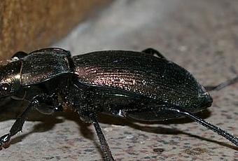 Este escarabajo de la familia de los carábidos (Carabidae, Adefhaga, Coleoptera) se está acercando a la puerta de nuestra casa desde hace unas noches. Se trata de Carabus violaceus.Los carábidos son una familia con centenares de especies europeas. Pasan la mayor parte del tiempo debajo del suelo. Son buenos corredores, pero a muchas especies les faltan las alas, y en algunos los élitros estan fusionados uno a otro.