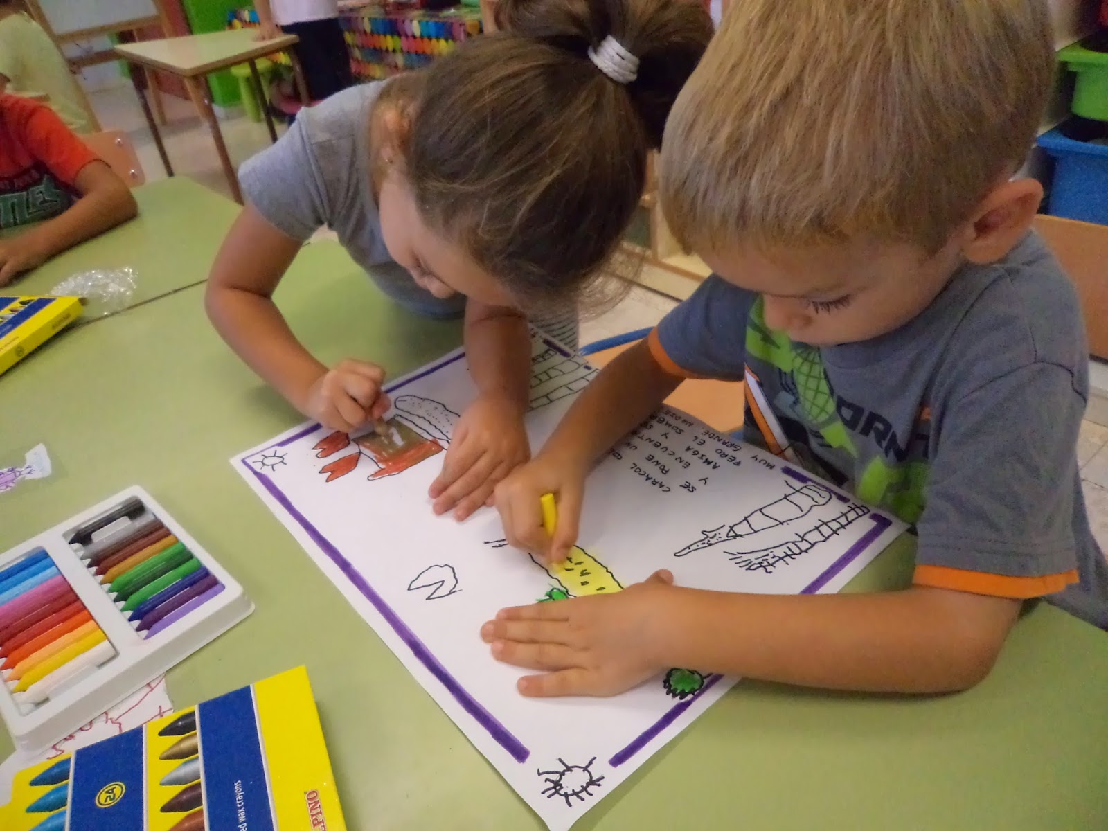 Tras verlo en clase hablamos sobre la historia, sobre cómo se sentía Caracol Col Col... incluso nos preguntamos qué cambiaríamos de nosotros mismos.Para dejar en clase un recuerdo de este particular Caracol hemos creado un gran cuento entre todos.Por parejas, que esta vez eligió la seño, dibujaron en un A3, la escena del cuento que les había tocado. Debían ponerse de acuerdo en qué dibujar, dónde, procurando no repetir lo mismo y realizar un dibujo proporcional al tamaño de la hoja. Luego lo repasaron y colorearon.