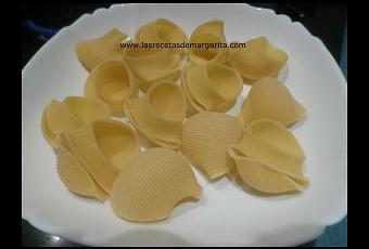 En una olla con abundante agua con sal y un chorro de aceite coceremos la pasta según indicación del fabricante. : Las Caracolas o Conchiglioni necesitan unos 14 minutos.