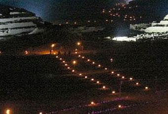 Ruta Panamericana - CaralEl camino desde la panamericana norte hasta Caral, vía Tiroles, te puede tomar hasta 1 hora dependiendo de la movilidad que tengas, pero al final del camino al fin desde lo lejos se ven las iluminaciones de la sagrada ciudad. Grande fue mi sorpresa cuando me dijeron que la entrada era gratis y solo había que registrarse en una lista, casi todos los de la lista eran de Lima, ademas al entrar al recorrido te dan un recipiente con una vela para andar por los senderos.