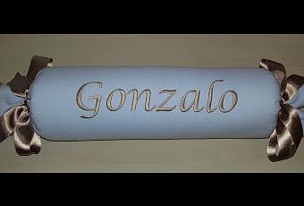 Pero vamos a lo que vamos, hoy os traigo un nuevo caramelito antivuelco para un bebé, en esta ocasión, celeste y camel para Gonzalo.