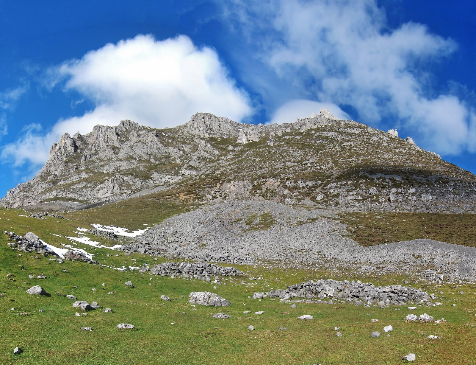 La Cochá el Visu como mencioné se encuentra entre la Peña Castiechu que la cierra por el sur y la cumbre del Foxón que cierra la collada por el norte. Si ascendemos hacia el norte en busca de esta cumbre, unos metros por encima del Visu y oculta en el fondo de una amplia hondonada se encuentran los restos de la Braña Foxón (1.575 m.) A la vuelta nos detendremos más en esta braña.