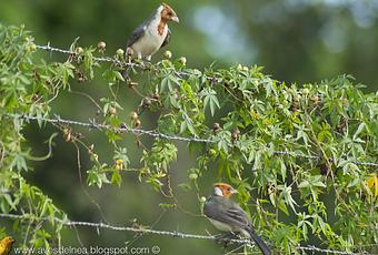 Pareja de juveniles de Cardenal fotografiados durante la tarde del día de ayer en la Reserva del Arroyo Itá por el amigo Javier, creo que son las primeras imágenes que se publican en el blog para esta especie en dicho lugar de la Ciudad de Posadas; personalmente los he visto en varias oportunidades pero nunca los tuve cerca como para intentar obtener alguna imagen.