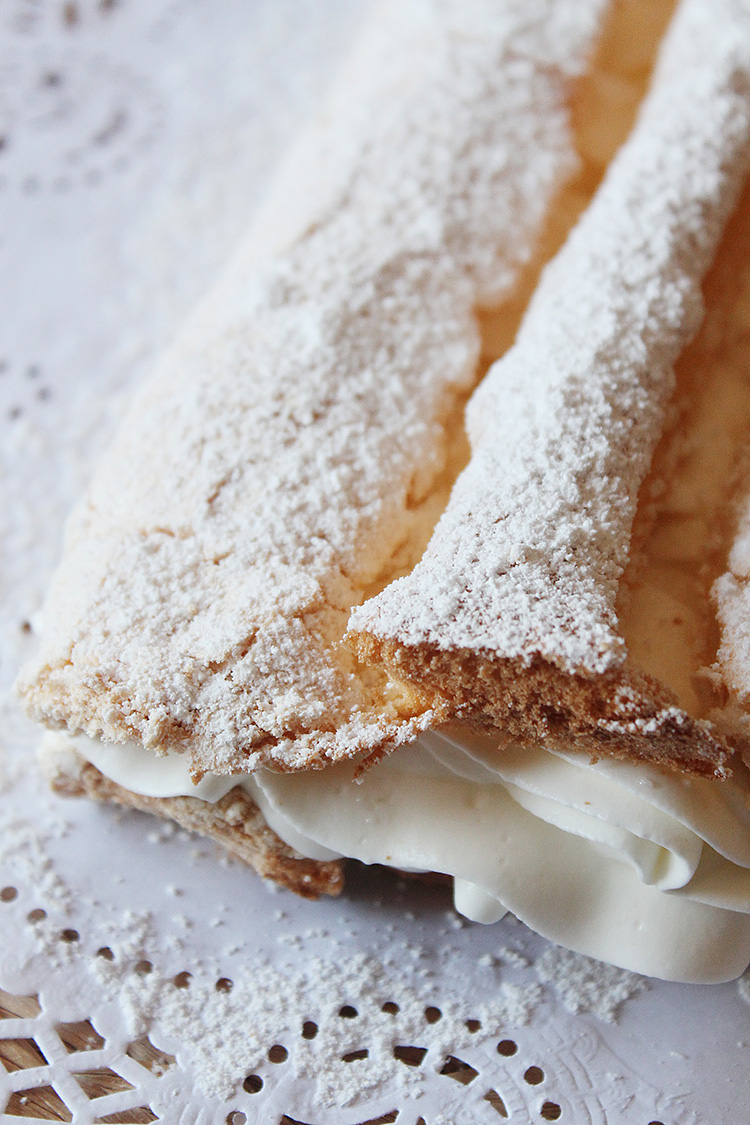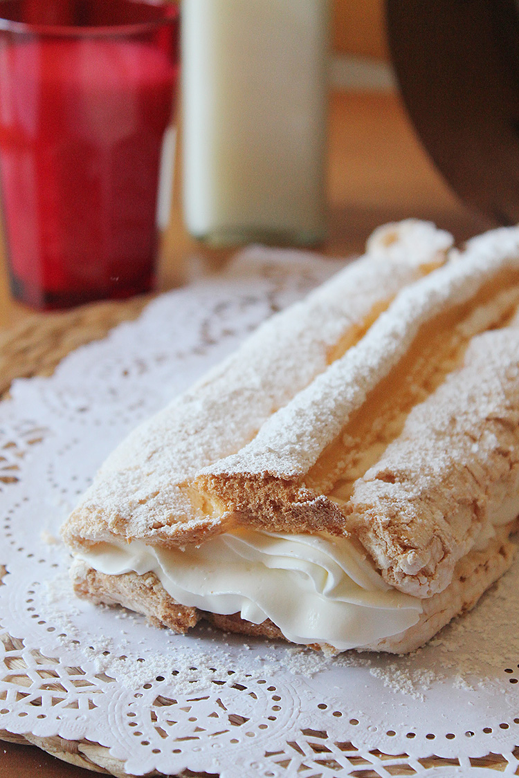 ElaboraciónEmpezamos preparando el merengue, que lo haremos italiano. Para ello vertemos el agua con 300 gramos del total de azúcar sin remover y dejamos que hierva hasta el punto de bola medio (120º C.) Mientras comenzamos a batir las claras a velocidad media con ayuda de las varillas eléctricas. Cuando las claras estén medio montadas, añadimos el azúcar que habíamos reservado en forma de lluvia. Cuando el almíbar este listo lo añadimos muy suavemente en forma de hilo sobre las claras ya bastante montadas. Una vez lo hayamos añadido todo aumentamos la velocidad y dejamos montar unos 10 minutos hasta que la mezcla se enfríe por completo.Rellenamos una manga pastelera del merengue y la reservamos.Para el bizcocho, cascamos los huevos y las yemas junto al azúcar en la amasadora, y batimos para montar y blanquear las yemas. Añadimos la harina, previamente tamizada, en forma de lluvia y con una espátula mezclamos con movimientos envolventes. Rellenamos una manga pastelera con la masa y reservamos.Precalentamos el horno a 160º C.En una bandeja de horno, y sobre papel sulfurizado (papel de horno), escudillamos (dar forma con la manga pastelera) el merengue formando dos lineas gruesas perpendiculares, dejando un espacio entre ellas para después añadir el bizcocho. Entre las lineas de merengue escudillamos una de bizcocho que se una con ambas lineas de merengue. Fijaros en la foto de arriba: merengue + bizcocho + merengue. Tendremos que hacer dos iguales, las cuales irán una encima de la otra a la hora de acabar el cardenal. Dependiendo del largo y del ancho del que hagáis las lineas, ese será el tamaño de vuestro cardenal.Una vez dada la forma lo horneamos durante unos 25-30 minutos. Sacamos del horno y dejamos enfriar por completo. El bizcocho puede que encoja un poco, pero no os preocupéis, estará igual de bueno.Para acabar, montamos la nata con el azúcar y escudillamos con una boquilla rizada sobre una de las placas de merengue con bizcocho, colocamos la otra encima con cuidado de que no se rompa y espolvoreamos con azúcar glas para decorar.Si una de las placas de merengue y bizcocho os ha quedado un poco mas fea que la otra, o si se os ha roto a la hora de manipularla, usadla como base y la otra, la guapa, será la que coloquemos encima.