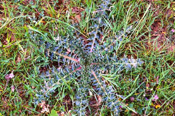 El cardillo del que os hablo es el Scolymus hispanicus L, una planta que en otras zonas recibe el nombre de tagarninas, como recordaréis los fieles del blog, porque hace unos meses preparamos con ellas un guiso de Berza Gitana de Jerez, que nos dejó encantados. A la izquierda podéis ver una foto de la planta antes de pelarse. Lo que se come es lo que tiene un color rosado, una vez limpio de las hojas de color verde, muy espinosas.