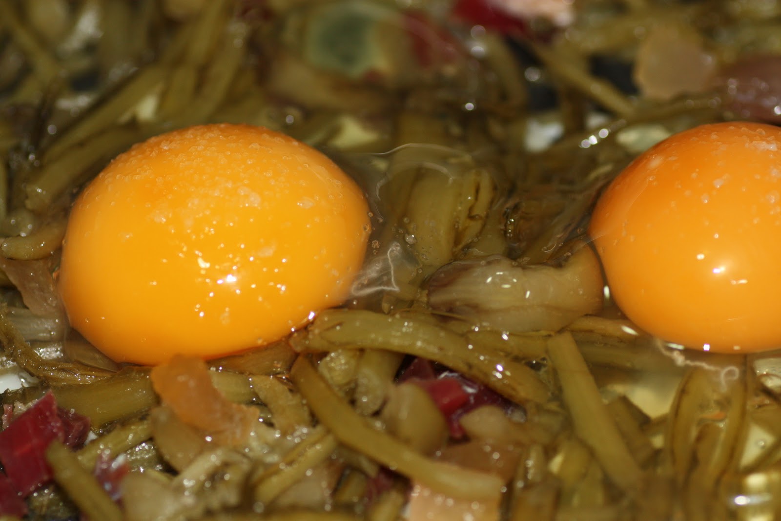 En esta ocasión, vamos a preparar un revuelto de cardillos o tagarninas, con un poco de jamón ibérico y un par de huevos. Con esta receta, quiero tomar parte en el HEMC #44 organizado por Palmira y dedicado a la Operación Bikini. Como es una receta sin demasiadas calorías, y además está llena de fibra, puede contribuir bien a la deseada pérdida de peso.Otra forma de preparar esta verdura es rehogada con un par de ajos y una puntita de pimentón, y unas gotas de vinagre, como si fueran acelgas o judías verdes rehogadas. De una forma o de otra, los cardillos están buenísimos.Revuelto de Cardillos con jamón