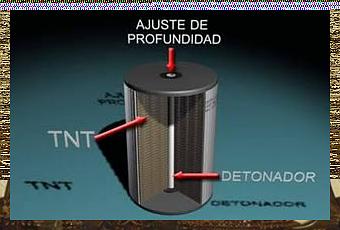 Cargas de profundidad, carga explosiva diseñada para estallar bajo el agua a una profundidad determinada mediante un detonador hidrostático y utilizada como arma contra submarinos. Una carga de profundidad no siempre necesita producir un impacto directo, ya que su explosión es efectiva a una cierta distancia bajo el agua. Las cargas de profundidad se usaron por primera vez durante la I Guerra Mundial; en su forma primitiva este arma era un largo cilindro cargado de TNT que se lanzaba o catapultaba, dos al mismo tiempo, por lo general desde la popa de un barco. La II Guerra Mundial dio lugar al perfeccionamiento de las cargas de profundidad y de los mecanismos para su lanzamiento. El uso de un nuevo y más potente explosivo llamado torpex (una mezcla de RDX, TNT y aluminio) redujo el tamaño de las cargas de profundidad. Las envolturas, por su parte, se hicieron más aerodinámicas para lograr el hundimiento más rápido de la carga.Las cargas de profundidad más recientes llevan incorporados dispositivos magnéticos o acústicos que hacen detonar los explosivos en las inmediaciones de la embarcación enemiga. También se han desarrollado dos tipos de lanzaderas múltiples de morteros; una, apodada Hedgegog, esparce las cargas en un círculo a una larga distancia por delante del barco que las lanza; la otra, una lanzadera más ligera, con menor retroceso, apodada Mousetrap, arroja una serie de cargas en línea recta ante el barco de lanzamiento y en ángulo recto a su rumbo. En la actualidad, las cargas de profundidad se sustituyen por cohetes antisubmarinos (ASROC). El ASROC es un torpedo cohete que busca el impacto en un submarino a partir del momento en que entra en contacto con el agua. Véase también Barcos de guerra.Revista Tecnología