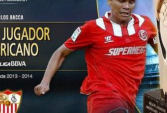 El delantero Colombiano del Sevilla FC Carlos Bacca, se proclamó ayer en la Gala de los Premios LFP 2014 mejor jugador Americano de la Liga BBVA 2013-14.