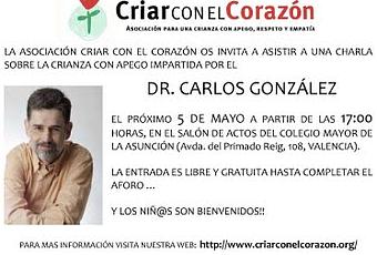 La Asociación Criar con el Corazón (a la que pertenezco) nos ofrece a todos los valencianos la posibilidad de ver y escuchar a nuestro querido Carlos Gonzalez.