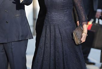 En su segundo día de visita a España, Carlos de Inglaterra y la Duquesa de Cornualles presidieron un concierto en el Hotel Ritz de Madrid.Camilla eligió un vestido de encaje azul noche, por debajo de la rodilla de escote cuadrado, manga francesa y falda con vuelo cortada por debajo de la cintura, que le favorecía, y que combinó con unos zapatos de salón de charol negro de medio tacón y cartera de mano. Por cierto, el impecable y elegante Príncipe Carlos lleva en esta ocasión el traje algo arrugado y no se si será efecto de la foto, pero se ve brillo en el bolsillo de la chaqueta y en la raya poco marcada del pantalón. MásCamilla, Duchess of Cornwall and Prince Charles, Prince of Wales arrive for a concert at the Ritz Hotel on day two of a three day visit to Spain on March 31, 2011 in Madrid, Spain. Camilla, Duchess of Cornwall, and Prince Charles, Prince of Wales, are on a three day trip to Spain as part of a tour to Portugal, Spain and Morroco.