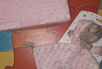 Hoy vengo de nuevo en modo bebé, hoy vengo con una mantita y un doudou personalizado para Carlota, una bebé que me está haciendo correr... en nada la tendremos entre nosotros y necesita sus regalitos.