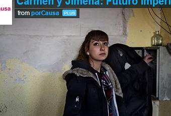 ‘Carmen y Jimena: Futuro Imperfecto’, documental multimedia producido por la Fundación porCausa que nos acerca a la realidad cotidiana, sueños y expectativas de los jóvenes de la España de hoy a través de los testimonios de dos adolescentes madrileñas residentes en dos ámbitos locales completamente diversos: los distritos de Moncloa-Aravaca y de Puente de Vallecas.+ Créditos:Realización: Gabriel Pecot y Celia Hernández.Guión: Gumersindo Lafuente, Gonzalo Fanjul, Gabriel Pecot y Celia Hernández.Música-Ambiente Sonoro: Anatol Rivero.Producción: Fundación porCausa.Patrocinado por: Fundación Balia, Save the Children y Unicef Comité Español.Financiado por: 145 micro-mecenas a través de Goteo.org.