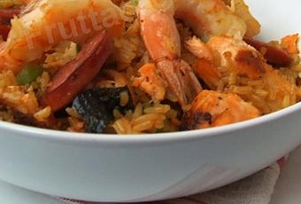 El arroz Jambalaya nace en el barrio francés de Nueva Orleans, Luisiana en el sector europeo original de la zona. Se dice que fue un intento por los españoles para hacer la paella en el Nuevo Mundo, donde el azafrán no estaba disponible debido a los costos de importación. Los tomates se convirtieron en el sustituto del azafrán. Conforme pasó el tiempo, la influencia francesa se hizo fuerte en Nueva Orleans, y las especias del Caribe cambiaron esta paella del Nuevo Mundo en un plato único. El plato ha evolucionado a lo largo del tiempo de una gran variedad, pero siempre se sigue llamando “Jambalaya”. Esta es mi versión inspirada en la receta Carnival Jambalaya de los productos Zatarain®