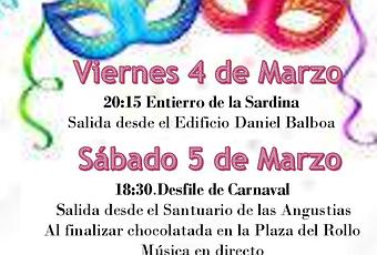 Molinaseca lleva sus carnavales a los días 4 y 5 de marzo. EL viernes a las 20:15 horas se realizará el Entierro de la Sardina con salida desde el Edificio Daniel Balboa. EL sábado 5 de marzo, gran desfile de carnaval a las 18:30 horas con salida desde el Santuario de Las Angustias y chocolatada final en la Plaza del Rollo.
