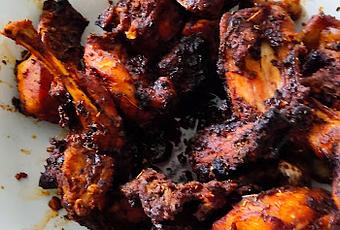 Este aliño verterlo sobre la carne y dejar que macere por espacio de unas 2 a 24 horas, pasar por la sartén, o como yo poner en la airfryer 30 minutos, a 200ºC, a la mitad del tiempo dar la vuelta a los trozos de carne para que se haga por el otro lado.