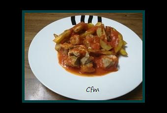 -La carne sobrante del cocido-Salsa de tomate casera (RECETA)-Patatas fritas (RECETA)
