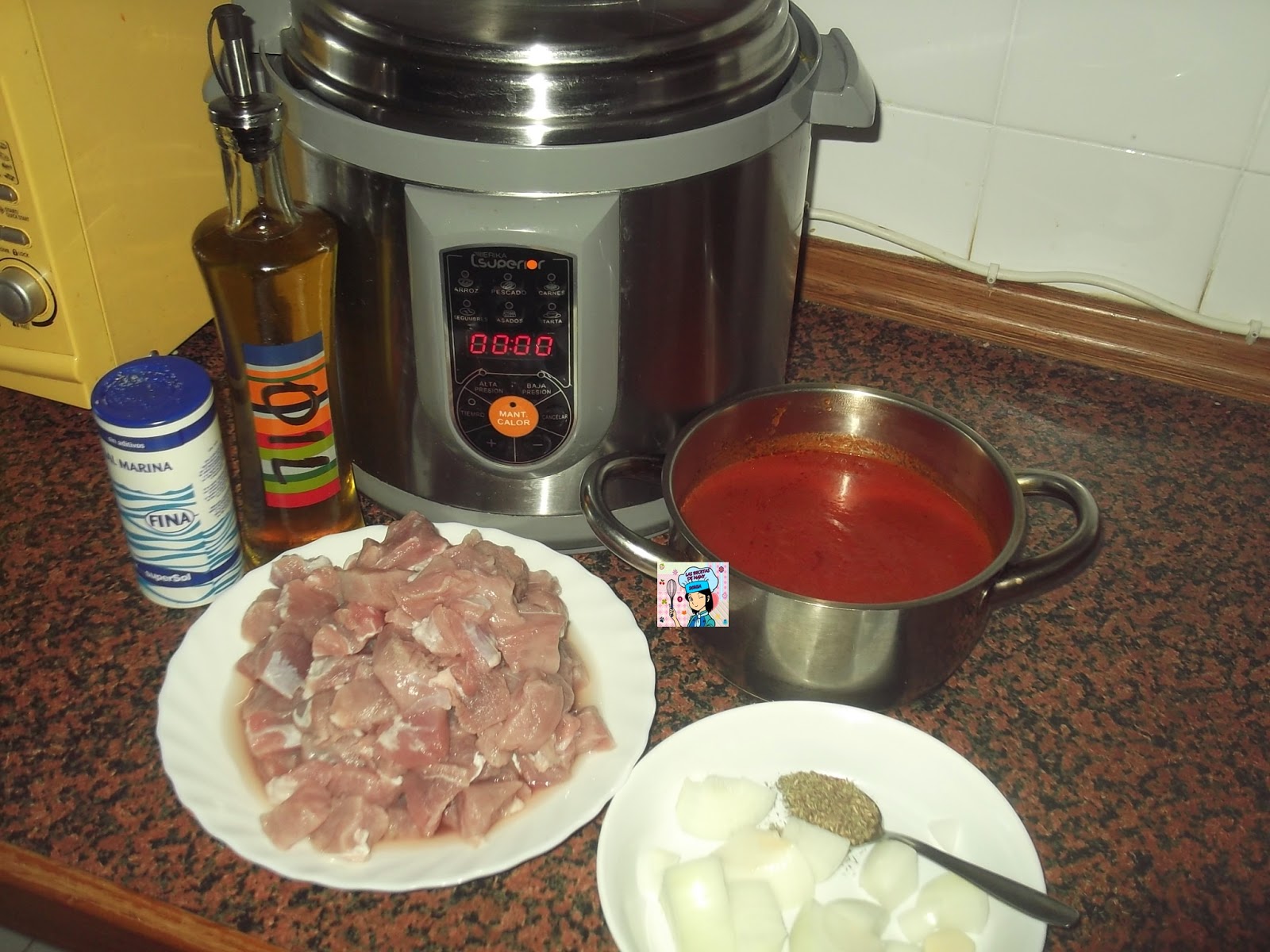 _ 1 kilo de carne a trocitos_ 1 cebolla_ 2 dientes de ajo_ Aceite de oliva_ Sal_ Orégano_ Salsa de tomate casera <--- Si pinchas te llevara a la recta