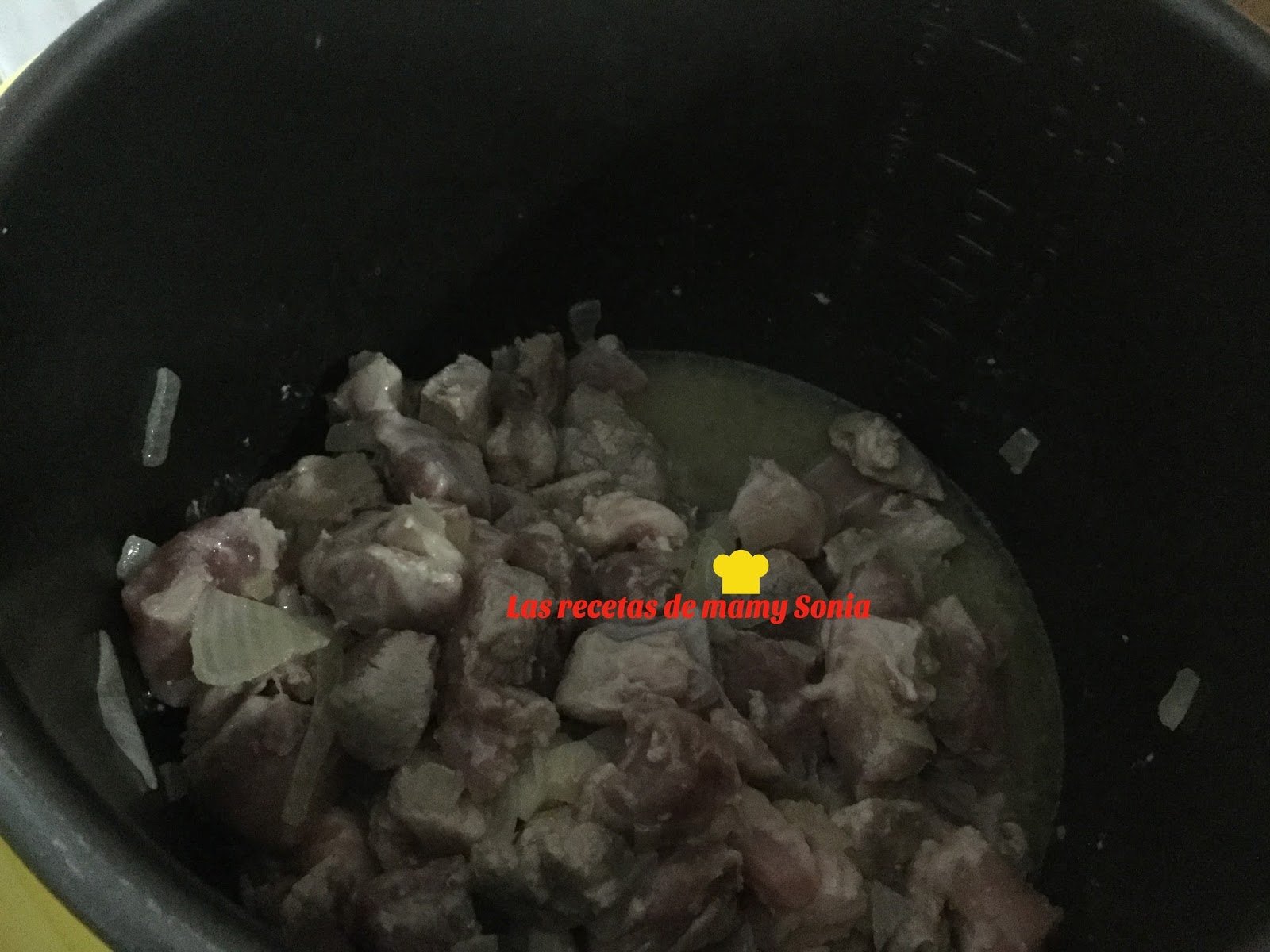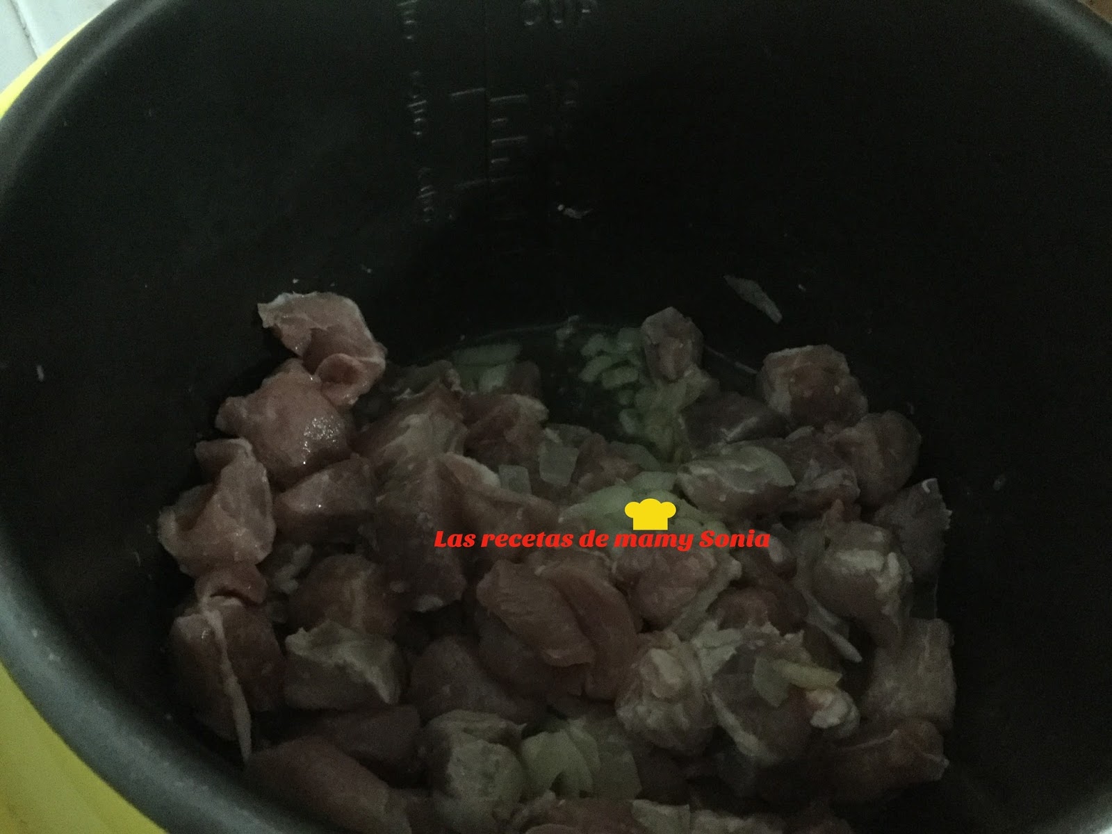 Incorporamos la carne, limpia, troceada y sazonada y rehogamos