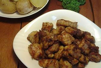 Al día siguiente ponemos a calentar una sartén con aceite y se sacan los trozos de carne de la salsa y se van friendo por tandas, colocándolas sobre papel absorbente para eliminar el exceso de aceite.