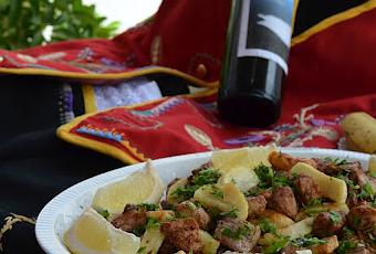 Ingredientes: -1 kg. de carne de cerdo cortada en trozos pequeños -papas fritas -perejil