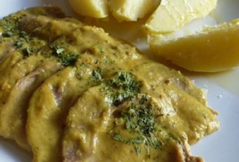 Yo estas las hice más bien finas por eso puse cinco para cada uno y quedó de un bocado delicado y riquísimo. Lo tenemos cociendo a fuego lento y tapado tres o cuatro minutos. Presentamos la carne loncheada y salseada con perejil picado espolvoreado para adornar. El resto de la salsa en salsera aparte por si alguien quiere más.
