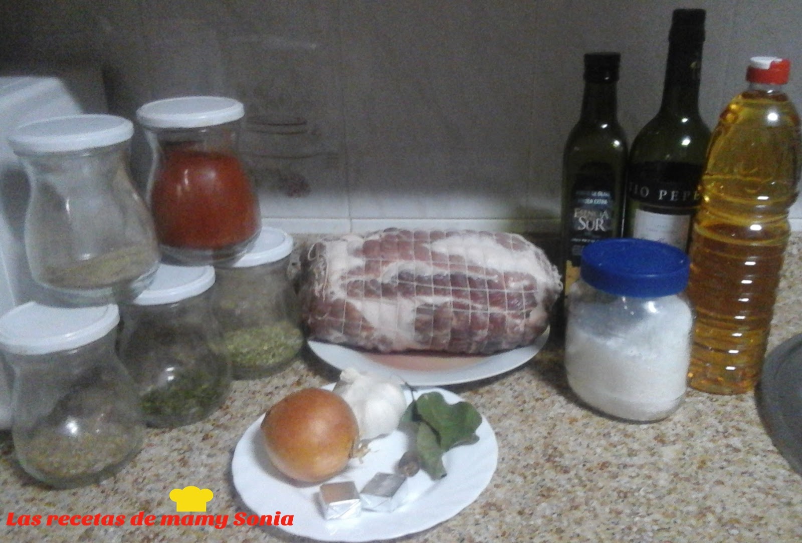 INGREDIENTES-1 kg. de cabeza de lomo en un trozo.(Yo he usado una de 2 kg porque mi marido se creía que íbamos hacer cientos a la mesa jajajaja digo yo porque que barbaridad jajaja.)-1 cebolla.-1 cabeza de ajo.-2 hojas de laurel.-2 cucharadas de cominos en grano.-2 cucharadas de orégano.-1 cucharadita de pimienta negra en grano.-2 cucharadas de pimentón dulce.-2 pastillas de caldo-1 vaso de agua de vino blanco.(Ya sabéis si es de mi Jerez mucho mejor jajaja)-Sal.-Aceite de oliva virgen extra.-1 cucharada de vinagre.