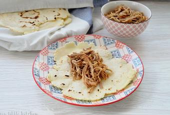 Yo me he inspirado en ella para cocinar estas carnitas, de las que hice la carne y el pan (sin gluten). La verdad es que no puede ser una receta más sencilla más rica.