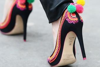 Están bordados con flores y y formas en zig-zag en tonos neón sobre fondo color crema, rosa o negro y divertidos pompones flúor.
