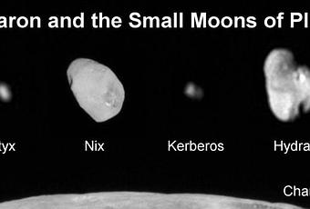 Mientras se preparaba la sonda New Horizons se identificaron otros satélites en las imágenes del Hubble, pero sólo eran motas de luz. Finalmente, el verano pasado, la New Horizons pudo sobrevolar Plutón, y fotografió Caronte y Plutón en detalle e hizo las mejores fotografías que podía de Estigia, Nix, Kerberos e Hydra. La composición muestra los resultados: cada satélite tiene una forma diferente, pero apenas se alude a su complejidad. No son muy satisfactorias, pero estas imágenes serán seguramente las mejores disponibles durante tiempo. Esto es porque los satélites son demasiado pequeños y distantes por los telescopios terrestres contemporáneos y no se prevén nuevas misiones al sistema plutonio.