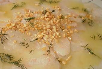 si es preciso, probar de sal y rectificar si fuese necesario, echando el eneldo troceado (cortado con las manos) por toda la superficie.