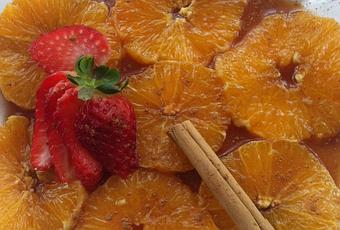 Se espolvorean con el azúcar moreno, la cucharadita de canela y el agua de azahar. Se revuelve con cuidado y se introducen en el frigorífico para dejarlas macerar por espacio de 30 minutos, como mínimo.