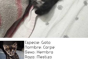 Esta es Carpe, una de los cinco hermanitos que son huérfanos, atropellaron a su madre, y ahora buscan un nuevo hogar. Es macho, tiene un mes y medio. Es muy juguetona y cariñosa. Está en Ronda, Málaga