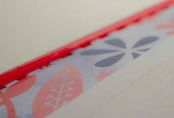 Y para rematar el asunto, pues yo le he puesto un canutillo a modo de encuadernación para poder unir las dos tapas. Si no tenéis este tipo de encuadernadora pues podéis poner un gusanillo o ir a la imprenta y que os pongan uno. También está la opción de hacer los agujeros a mano y coserlo con un hilo gordito, lanita, cuerda, cinta de colores... vamos lo que se os ocurra.