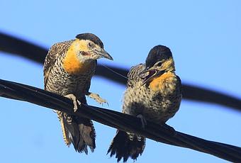 Carpintero campestre alimentando juvenil