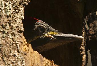 Al regresar a Posadas de nuestro viaje a San Sebastián de la selva nos detuvimos por última vez en el Puesto Uruzú del Parque Provincial Uruguaí en la Ruta 19; habíamos decidido recorrer el sector del parquizado durante 30 minutos en plena siesta; salvo algunos Boyeros, Urracas, Tuquitos y Vencejos lo único que valió la pena fotografiar (al menos para mi) fue este nido activo de un Carpintero garganta estriada del cual se asomó en varias oportunidades el pichón. De el son las fotos que ilustran esta entrada.