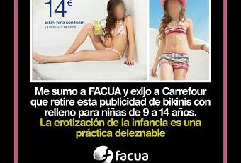 Es por eso que Facua-Consumidores ha exigido a Carrefour que retire el bikini con relleno para niñas de entre nueve y catorce años, ya que “potencia una peligrosa erotización de la infancia“.