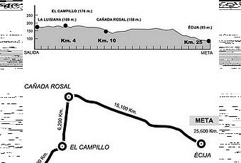 hoy hemos corrido la popular ruta de Carlos III- Ciudad del Sol (vaya nombre). La prueba se desarrolla entre La Luisiana y Ecija pasando por El Campillo y Cañada Rosal, el recorrido es de 25.600 metros con un perfil favorable especialmente los últimos kilometros que se baja bastante. Los asistentes hemos sido afortunados y nos hemos librado de la lluvia, ha hecho un día perfecto para correr incluso en algunos tramos el viento entraba ligeramente por atras. Es muy buena cita como preparación para el Maraton de Sevilla, ideal para hacer una tiradita larga en compañía, se entrenan las piernas y la cabeza ya que destacaría de la carrera las eternas rectas antes de llegar a Ecija, el acercamiento al pueblo es espectacular, por la belleza del mismo y porque al estar inmerso en un valle no se ve hasta que estás encima y aparece de repente.La bolsa de corredor está bien y entregan copa a todo el mundo para posterior deleite de los familiares que se creen que has ganado la carrera al llegar a casa.Personalmente muy contento de haber asistido, no la conocía y me ha gustado. He ido con mis amigos Juan y Emiliano, haciendo los primeros kilometros juntos y luego yendo con Juan hasta el final. Nos lo hemos tomado como un entreno largo y en ningún momento hemos sufrido yendo a un ritmo cómodo y constante desde el principio. Al final entreno de dos horas con un pulso medio de 140 acabando bien muscularmente y de cabeza.La proxima semana cambiamos de ritmos y estaremos en el Cross de Itálica.Saludos a todos.