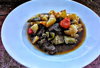 Dejamos la carne hasta tenerla doradita añadimos las zanahorias contadas en trozos, ponemos los ajos, las alcachofas sin el agua, la cerveza de la tienda Cervetri y las pastillas de caldo, cubrimos con agua y dejamos cocinar en la olla exprés tapada de 15 a 20 minutos.