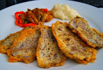 Las rebozamos por harina y huevo y freimos en aceite de oliva. Sacamos a un papel absorbente.