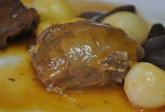 Meter la carne con las patatas y los rovallones, unos minutos.Rectificar de sal y listo.Nota: Lo podéis hacer en una olla normal o exprés.