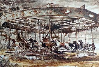 Lo era en efecto, un bello carrusel que antaño debió ser una joya. Sus caballos, sus ponys, esas diminutas bestias plásticas que posaban sobre mí esos ojos negros y serenos, ojos que buscan culpa en el alma y pecado en el corpiño, ojos que parecen haber visto las eternidades perecer. Ahora yo vago aquí agotando mí tiempo.
