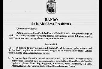 Tras leer el bando publicado por su ayuntamiento, el cual usted rubrica y sella en nombre de la alcaldía de Fuengirola, comentarle que no iré a las fiestas de dicha localidad debido a que usted censura cualquier tipo de cultura musical.