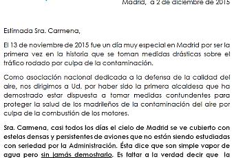 Debido a las medidas tomadas en Madrid el pasado 13 de noviembre de 2015en relación a la contaminación, hemos hecho este escrito con intención de solicitar