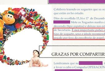 Nota del cole para recogida solidaria de juguetes